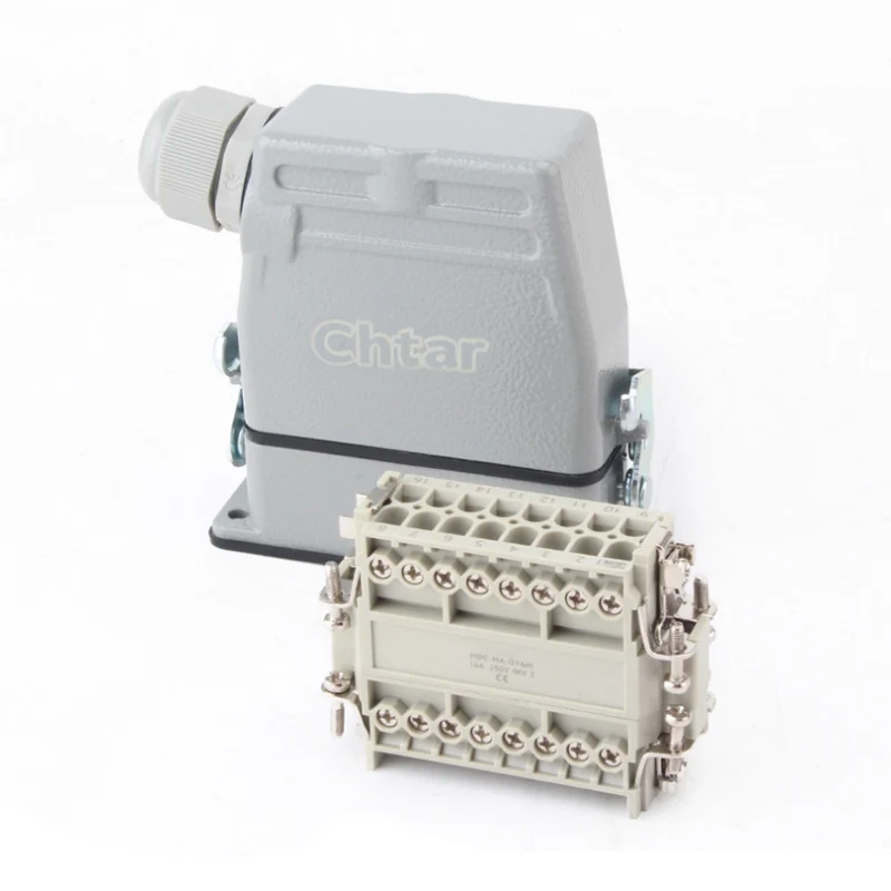 В сравнение с HE-016, издръжливият 16A 10-пинов конектор за тежък режим на работа на CHTAR е 16-пинова мини версия. Може да работи в по-малко пространство. Обикновено се сглобяват заедно с алуминиев корпус HA-016. Те са изработени от PC с висока якост и имат месингови сребърни щифтове вътре. Има 16 пина, свързани с 16 жици. Нашата фабрика се намира в град Yueqing, провинция Zhejiang, Китай. Ние произвеждаме съединители за тежки условия на работа повече от 10 години и имаме над 15 години опит в експортната търговия. Очакваме с нетърпение да станем ваш доверен дългосрочен партньор в Китай.