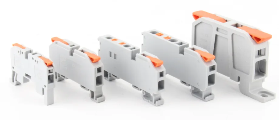 Бързите съединители за снаждане на DIN релса могат лесно да се отварят и преправят многократно, без да се повредят съединителят или проводниците, предлагайки изключителна гъвкавост по време на инсталиране, тестване и бъдещи промени на веригата. Връзките са фиксирани на din rial, за да работят. Позицията на лоста осигурява ясно визуално потвърждение. Лостът надолу показва затворена и защитена връзка, лостът нагоре показва отворено или прекъснато състояние. Ситуацията на лоста помага при отстраняване на неизправности и проверки за безопасност.